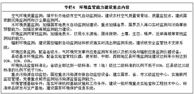 2.積極促進環保產業發展。 以環境保護重點工程為需求,以環保示范工程為依托,以標準化、系列化、國產化、現代化為導向,自主創新和引進消化吸收相結合,大力發展環保裝備制造業。 以環境影響評價、環境工程服務、環境技術研發與咨詢、環境風險投資為重點,以市場化為主體,積極發展環保服務業。 制定發展規劃,推進技術進步,加強行業自律,規范市場行為,促進公平競爭,推動環保產業健康發展。 加大對外開放,實施引進來、走出去戰略,支持各類所有制企業進入環保產業。培育一批具有自主品牌、核心技術能力強、市場占有率高、能夠提供較多就業機會的優勢企業和企業集團,使環保產業成為國民經濟的新興支柱產業。