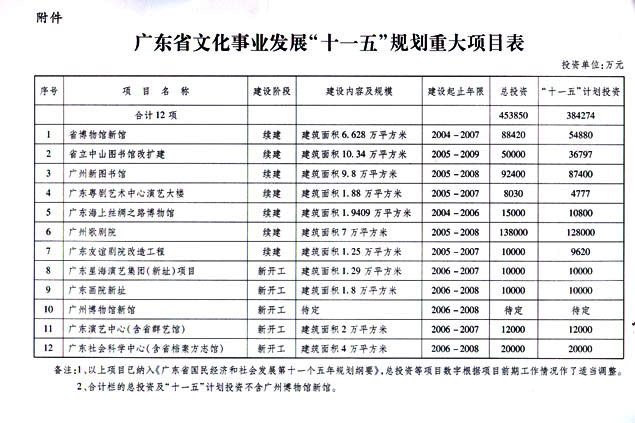附件:廣東省文化事業發展“十一五”規劃重大項目表