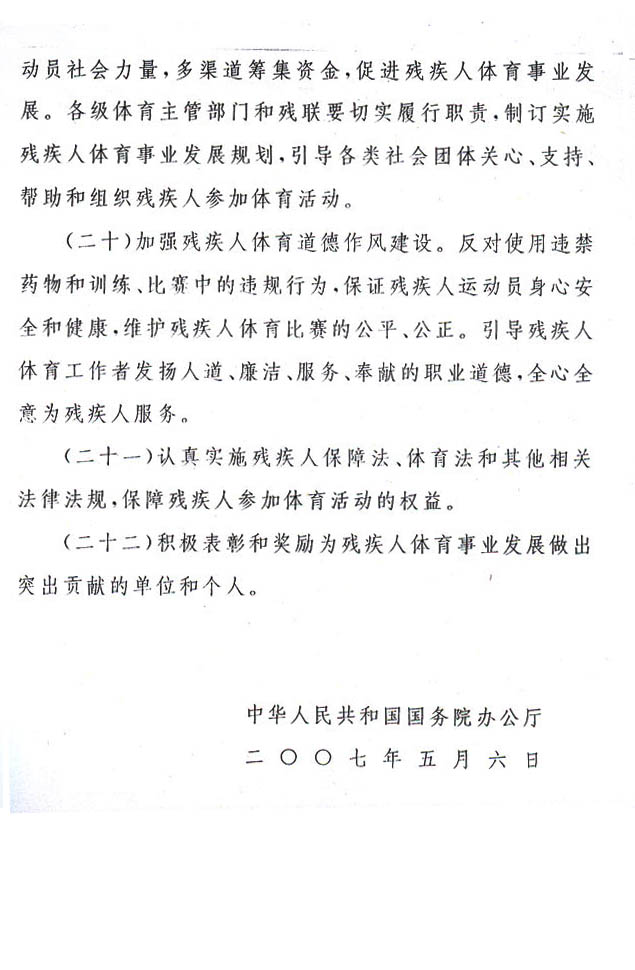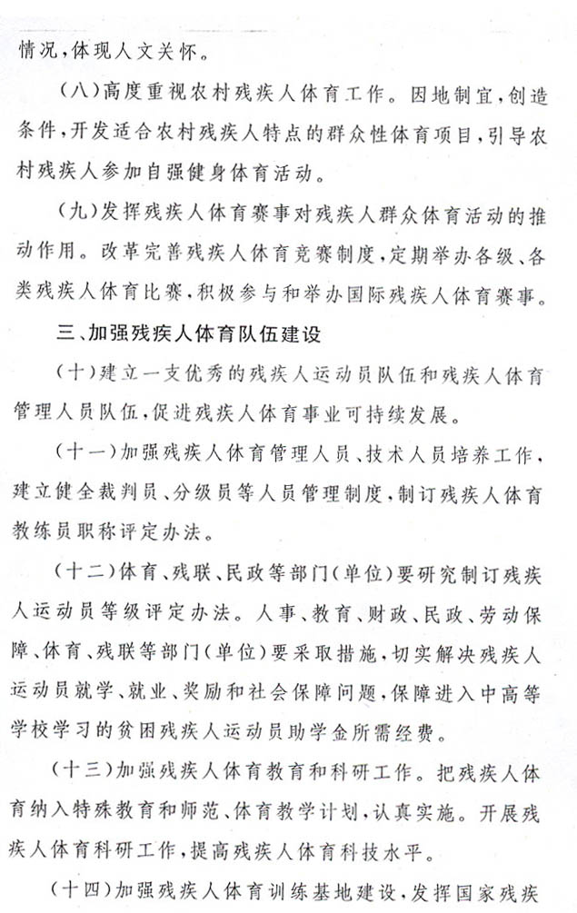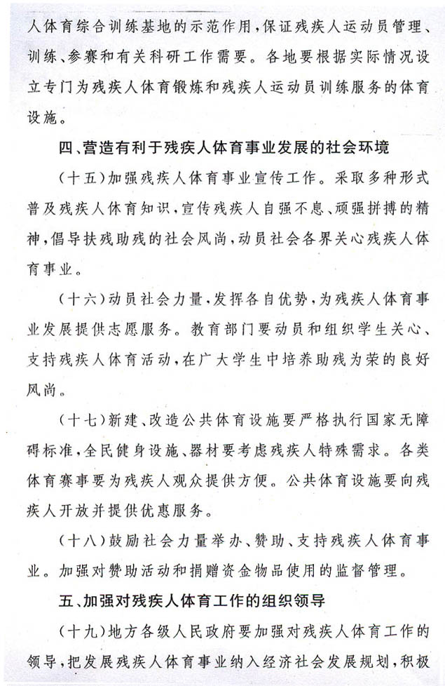 殘疾人體育工作意見(jiàn)的通知