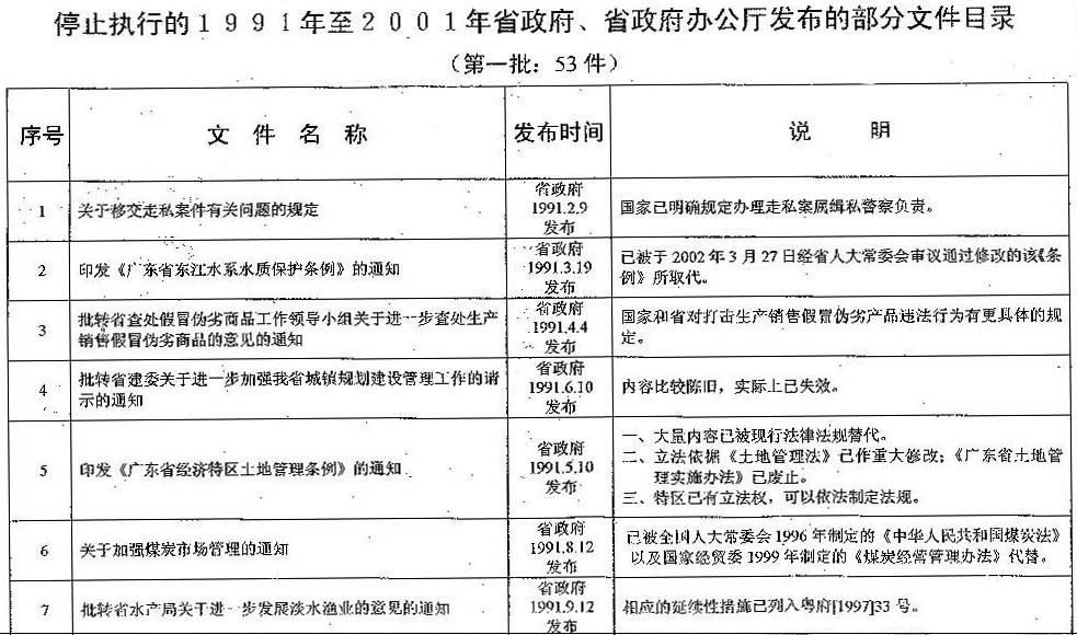 關(guān)于停止執(zhí)行1991年至2001年省政府、