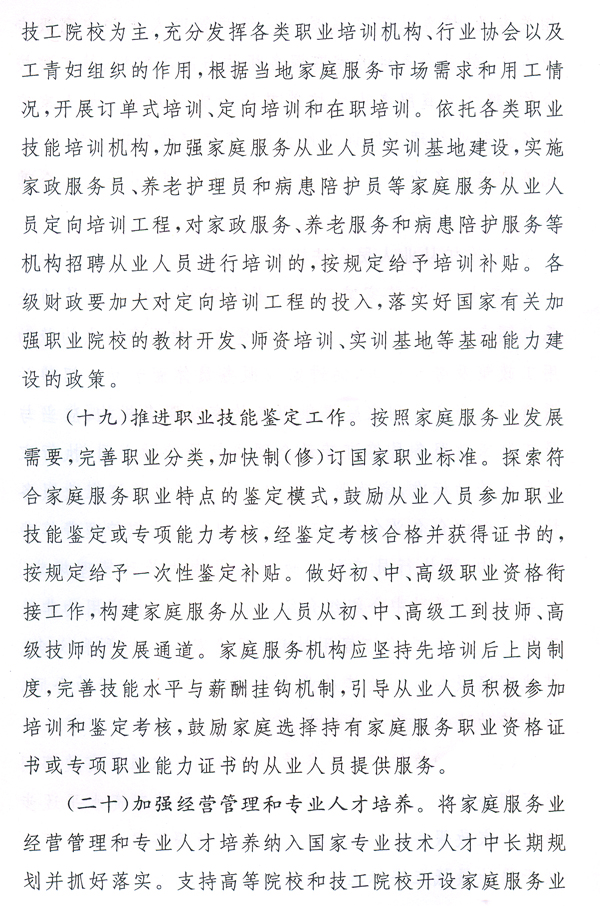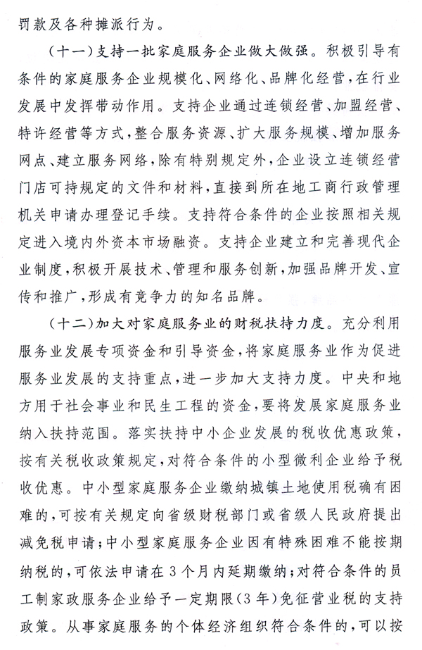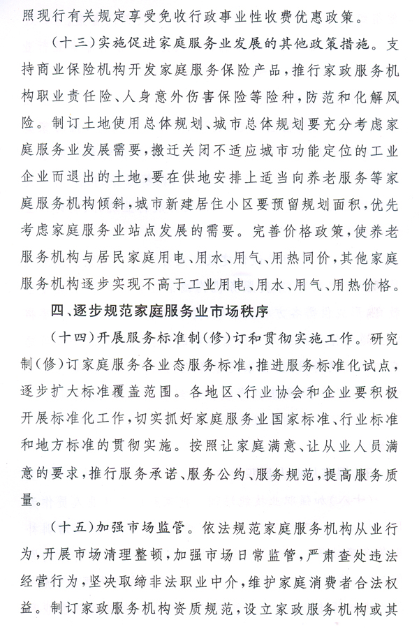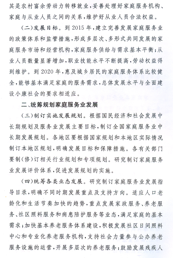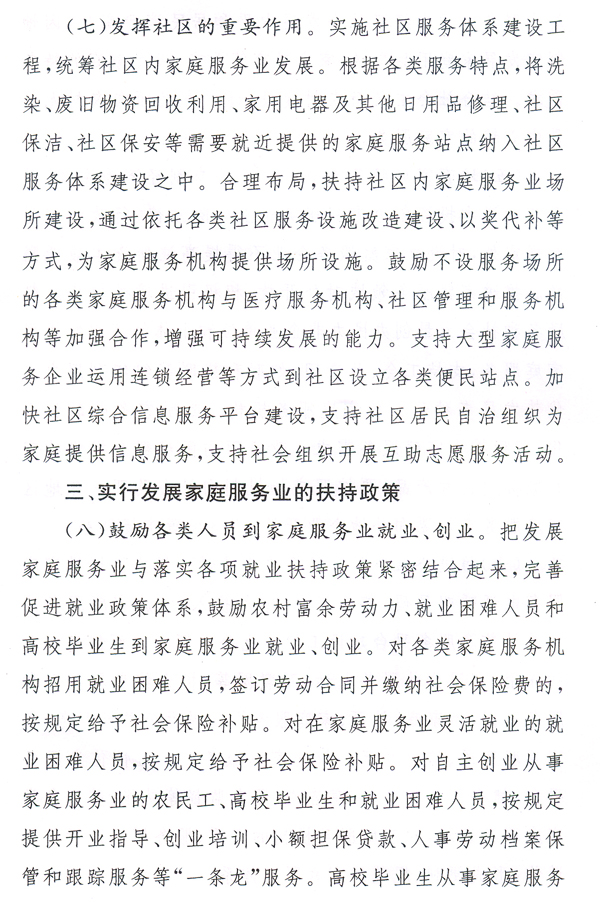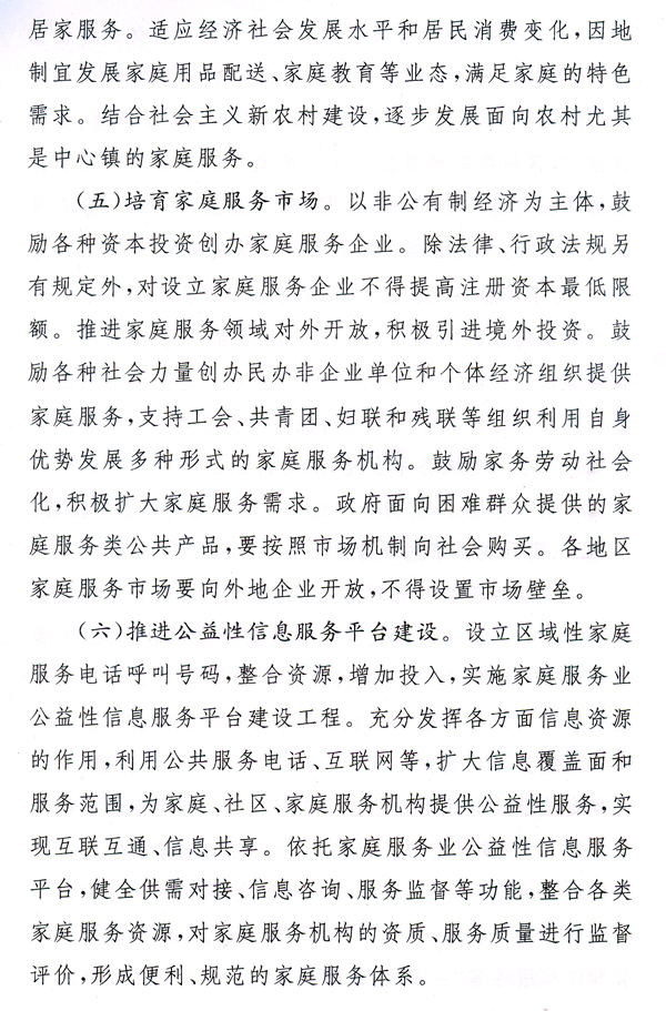 大力發展家庭服務業,加快市場化、產業化和社會化,形成惠及城鄉居民的比較健全的家庭服務體系,有利于擴大內需、增加就業、改善民生,對于提高人民生活質量、促進社會和諧、全面建設小康社會具有重要作用。各地、各有關部門要高度重視,按照國辦發〔2010〕43號文提出的要求,完善和落實各項政策措施,大力推動家庭服務業健康發展。省人力資源社會保障廳要會同有關部門,抓緊研究制訂我省“十二五”時期家庭服務業發展規劃,起草貫徹落實國辦發〔2010〕43號文的具體實施意見,報省政府批準后組織實施。各地要在摸清本地區家庭服務業發展現狀的基礎上,結合實際制訂出臺扶持家庭服務業發展的配套政策措施。