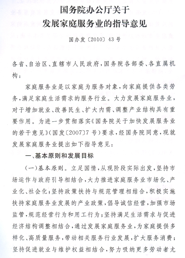 現將《國務院辦公廳關于發展家庭服務業的指導意見》(國辦發〔2010〕43號)轉發給你們,經省人民政府同意,結合我省實際提出如下意見,請一并貫徹執行。