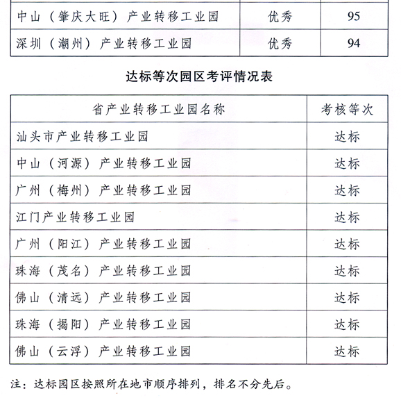 根據《考評辦法》有關規定,特對評定為優秀等次的廣州、佛山、韶關、湛江、潮州、汕尾、肇慶等7個地級以上市政府和廣州(湛江)產業轉移工業園、東莞(韶關)產業轉移工業園、中山(肇慶大旺)產業轉移工業園、深圳(潮州)產業轉移工業園等4個省產業轉移工業園予以全省通報表彰。 二、考評結果分析 (一)產業轉移工作取得初步成效。 1.各地各園區產業轉移工作體制機制進一步完善。 各地級以上市政府均建立了較為完善的產業轉移體制機制、政策措施到位、組織管理得力,省產業轉移工業園組織管理工作進一步完善。本次考評中政策措施類的考核指標中,僅少數地級以上市政府在資金安排計劃、項目引進計劃等指標上被扣分;考核的13個省產業轉移工業園組織管理類的指標均得到滿分14分。 2.珠三角地級以上市合作共建力度進一步加強。 一是珠三角各市均已派員(政府副秘書長或處級以上干部)到合作共建省產業轉移示范園所在地政府或園區任職或掛職,參與園區管理。二是合作共建資金支持力度加大。珠三角各市落實的2009年度共建資金均已達到或超過《關于抓好產業轉移園建設加快產業轉移步伐的意見》(粵府〔2009〕54號)要求的1億元。三是合作招商工作得到加強。2009年珠三角各市與合作共建方共聯合舉辦了30多場次規模較大的招商引資會和招商考察活動。四是推動大型工業項目及項目組團轉移入園工作取得進展。2009年珠三角地區共推動4個投資10億元以上的大型工業項目或項目組團進入省產業轉移工業園,對園區產業發展產生了深遠影響。 3.對產業轉移工作的認識進一步提高。 一是珠三角地區對產業轉移的認識不斷提高,推動產業轉移的積極性也不斷增強。除按規定落實產業轉移工作機構、專項工作經費、共建省產業轉移示范園的資金投入外,一些市還主動設立本市產業轉移獎勵資金,如佛山市2009年安排了2000萬元用于獎勵本地企業向合作共建的省級產業轉移工業園轉移。二是欠發達地區和省產業轉移工業園科學發展的意識有所提高。各市逐漸從招商引資向招商選資轉變,注重對園區發展進行科學規劃,提高了轉移項目的準入門檻,同時堅持產業集聚和節約集約利用土地,積極打造產業集群。從考評的情況看,各市省產業轉移工業園新增單位生產總值(GDP)消耗新增建設用地均低于所在市平均水平,考評的13個省產業轉移示范園中,在園建成項目全部符合用地、建筑容積率、綠地率、建筑密度、投資強度、單位面積稅收等方面的規劃要求,并按要求通過環評,園區污水處理設施及管網建設也明顯加快。三是省產業轉移園產業集聚發展意識不斷提高。13個省產業轉移示范性園中,主導產業產值占園區產值的比例全部超過了50%,其中10個園區每畝土地面積產出工業增加值達到了60萬元以上。 4.產業轉移工作效果進一步顯現。 從珠三角產業轉出市看,一是注重利用產業轉移推動產業轉型升級。如,廣州市利用部分工業企業退出后的廠區建設33個創意產業園,每年可實現產值120億元;佛山市南莊鎮通過轉移陶瓷生產企業,逐步形成陶機制造、陶瓷研發、商貿會展、總部基地等多種形態并存的產業發展新格局,陶瓷產業產值不降反升,同時也一舉摘掉了污染帽子,成為環境優美的宜居城鎮。二是產業結構進一步優化。各市勞動密集型產業進一步下降,人均GDP增長率逐步提高,珠三角地區2009年人均GDP增速僅比GDP增速低0.4個百分點,東莞市則實現了人均GDP增速高于GDP增速4.7個百分點的大逆轉。三是珠三角產業發展質量進一步提升。東莞、珠海、廣州市2009年現代服務業占全市GDP比重比上年分別提高了3.62個百分點、2.62個百分點、1.15個百分點,深圳市2009年高技術制造業占全市GDP比重比上年提高了2.09個百分點,中山、佛山市2009年先進制造業占全市GDP比重比上年分別提高了1.50個百分點、0.64個百分點。 從產業轉移承接地看,省產業轉移工業園對當地經濟社會發展的帶動作用進一步顯現,已經成為帶動當地發展的增長極,帶動粵東西北地區經濟增速全面超越珠三角地區,同時也成為當地群眾致富奔康的重要載體。一是園區工業增加值快速增長。2009年省產業轉移工業園實現工業增加值總計超過290億元,同比增長21%,占粵東西北地區工業增加值總和的9.4%.15個產業轉移承接市中,園區工業增加值占全市10%以上的有5個,其中汕尾市園區工業增加值占比達到36.41%。各市園區工業增加值保持高速增長,15個市中8個市園區工業增加值增速超過30%;11個市的園區工業增加值增量占全市工業增加值增量比例超過10%,其中7個市園區工業增加值增量占全市增量比例超過了20%,河源市園區工業增加值增量占全市比例高達46.85%。二是省產業轉移示范園工業稅收大幅增長,對當地財政貢獻日益凸顯。13個省產業轉移示范園中,6個園區工業稅收增速超過100%;9個園區工業稅收增量占所在市工業稅收增量的25%以上;4個園區工業稅收占所在市工業稅收的比例超過10%,其中廣州(湛江)產業轉移工業園工業稅收占全市工業稅收的比例達到52.2%.三是引進項目質量不斷提高。欠發達地區充分利用省產業轉移工業園的載體作用,推動工業入園和集聚集約發展,大型工業項目不斷增多,僅2009年入園立項大型工業項目(項目組團)就達22個。四是園區吸納了大量本地勞動力。截至2009年底省產業轉移工業園總計吸納