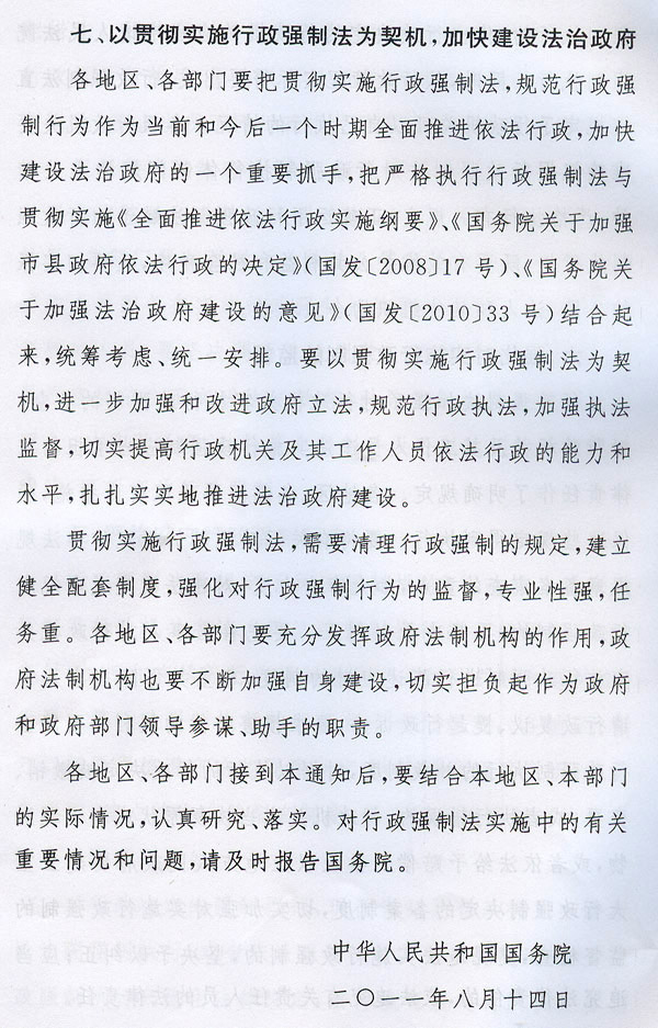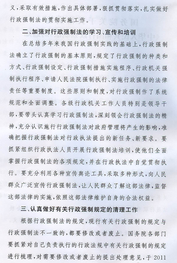 轉發國務院關于貫徹實施 《中華人民共和國行政強制法》的通知 ?