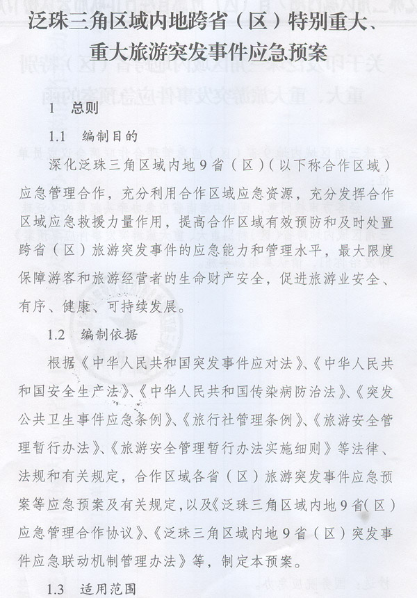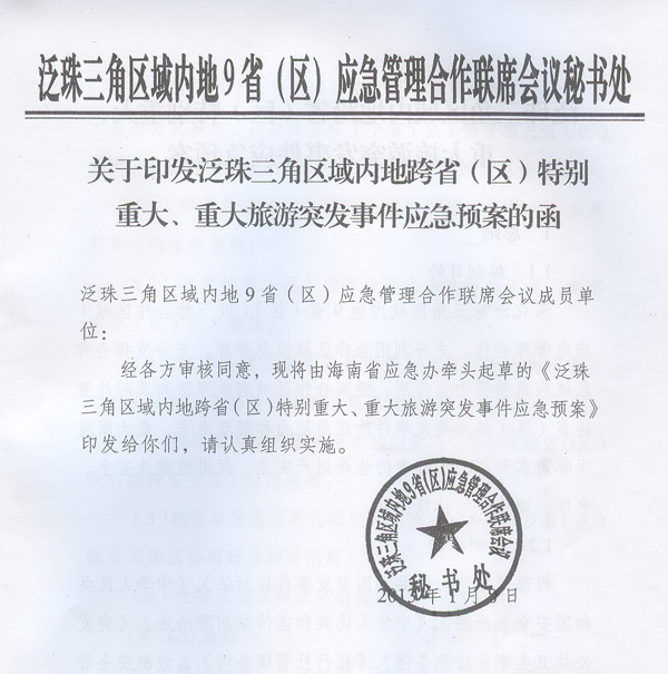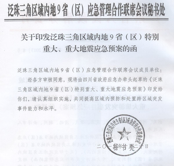 ? 廣東省人民政府辦公廳關(guān)于轉(zhuǎn)發(fā)《泛珠三角區(qū)域 內(nèi)地9省(區(qū))特別重大、重大地震應(yīng)急預(yù)案》、 《泛珠三角區(qū)域內(nèi)地跨省(區(qū))特別重大、 重大旅游突發(fā)事件應(yīng)急預(yù)案》的通知 ? 韶關(guān)、河源、梅州、湛江、茂名、肇慶、清遠、潮州、云浮市人民政府,省應(yīng)急委成員單位: 根據(jù)省府領(lǐng)導(dǎo)同志意見,現(xiàn)將泛珠三角區(qū)域內(nèi)地9省(區(qū))應(yīng)急管理合作聯(lián)席會議秘書處《關(guān)于印發(fā)泛珠三角區(qū)域內(nèi)地9省(區(qū))特別重大、重大地震應(yīng)急預(yù)案的函》、《關(guān)于印發(fā)泛珠三角區(qū)域內(nèi)地跨省(區(qū))特別重大、重大旅游突發(fā)事件應(yīng)急預(yù)案的函》轉(zhuǎn)發(fā)給你們,請結(jié)合《廣東省突發(fā)事件應(yīng)對條例》有關(guān)規(guī)定,認(rèn)真貫徹落實。執(zhí)行中遇到的問題,請徑與省政府應(yīng)急辦聯(lián)系。 ? 省府辦公廳 2013年1月10日 ? ?
