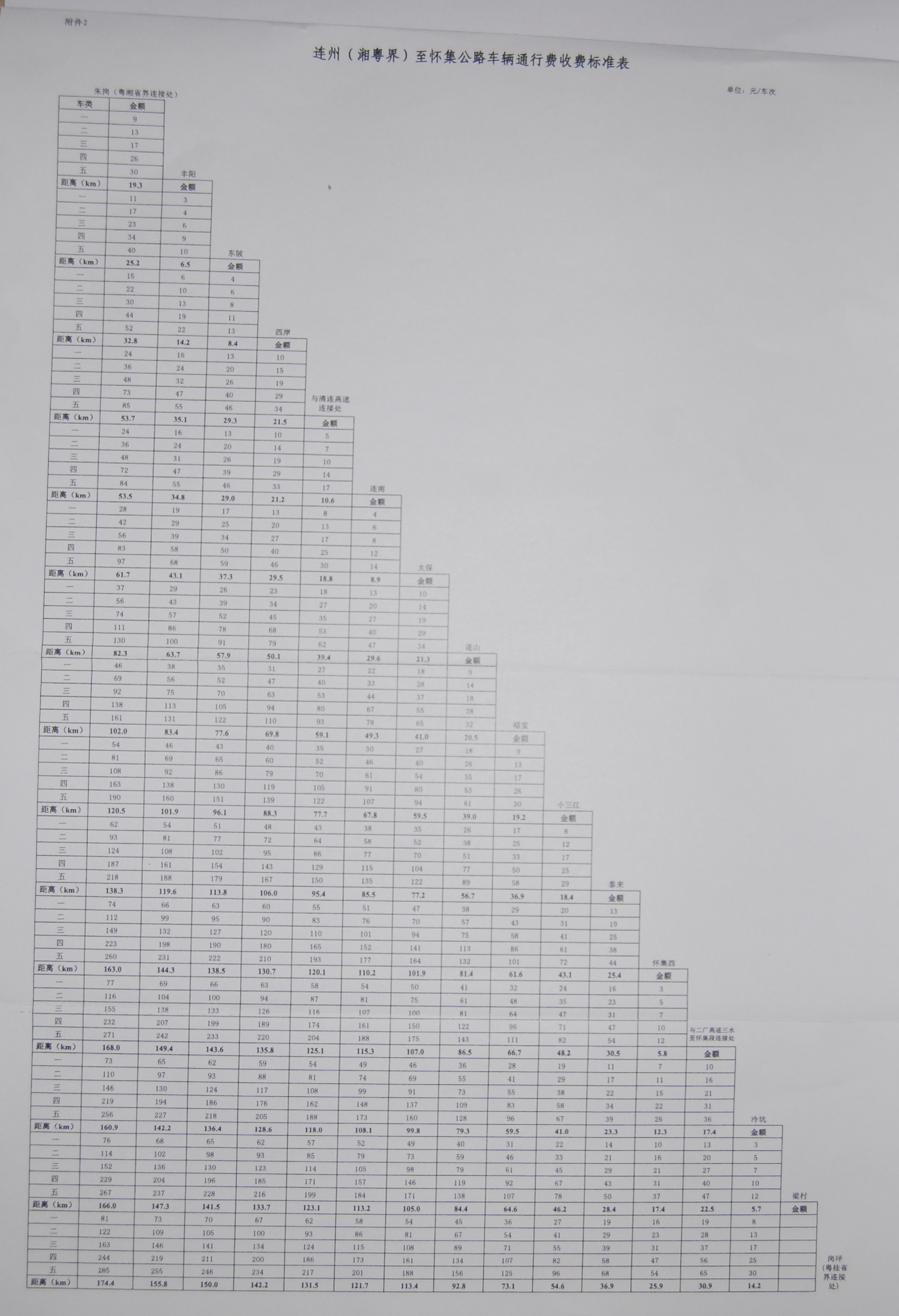 2.連州(湘粵界)至懷集公路車輛通行費收費標(biāo)準(zhǔn)表 ? ? ? ? 省府辦公廳 2013年11月19日 |