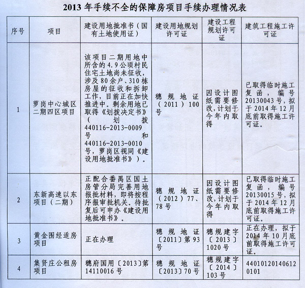 1.廣州從化市利泰花園保障性住房等3個(gè)小區(qū)820套保障性住房和拆遷安置住房空置超過(guò)1年問(wèn)題。該問(wèn)題涉及從化市利泰花園698套公共租賃住房、增城市百晟·匯翠灣41套安置房和荔灣區(qū)寶盛沙地二期項(xiàng)目81套拆遷安置房。省政府已要求廣州市政府將上述空置住房盡快投入使用,切實(shí)發(fā)揮使用效益。