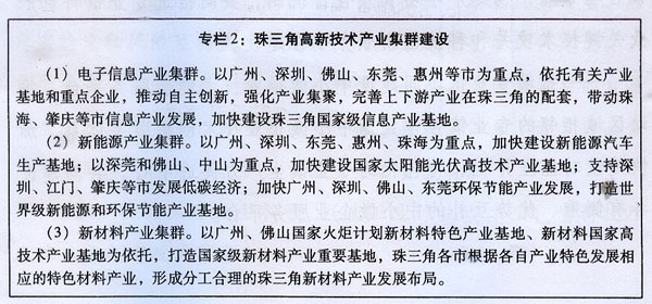 ——打造高新技術(shù)產(chǎn)業(yè)集群。積極落實(shí)《廣東省高新區(qū)創(chuàng)新型產(chǎn)業(yè)集群建設(shè)方案》(粵科函高字〔2012〕893號),加快建設(shè)深圳下一代互聯(lián)網(wǎng)、惠州智能終端與云計算應(yīng)用、中山健康科技等國家創(chuàng)新型產(chǎn)業(yè)集群建設(shè)試點(diǎn),培育和建設(shè)廣州北斗衛(wèi)星導(dǎo)航、珠海軟件及集成電路設(shè)計等省級創(chuàng)新型產(chǎn)業(yè)集群,推進(jìn)各高新園區(qū)形成優(yōu)勢特色產(chǎn)業(yè)。具體詳見專欄2。