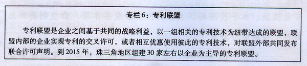 ?。ㄒ唬┥钊雽?shí)施知識產(chǎn)權(quán)戰(zhàn)略。(省知識產(chǎn)權(quán)局牽頭,省科技廳、質(zhì)監(jiān)局及珠三角九市政府等參與) ——推進(jìn)知識產(chǎn)權(quán)的創(chuàng)造與使用。加快實(shí)施戰(zhàn)略性新興產(chǎn)業(yè)自主創(chuàng)新工程及重大專利技術(shù)與產(chǎn)業(yè)化計劃,推進(jìn)專業(yè)鎮(zhèn)知識產(chǎn)權(quán)專項(xiàng)行動,完善知識產(chǎn)權(quán)評估交易機(jī)制,探索實(shí)施重大項(xiàng)目的知識產(chǎn)權(quán)評議制度,加快形成一批具有自主知識產(chǎn)權(quán)的產(chǎn)業(yè)和產(chǎn)品。推動珠三角各行業(yè)建立跨行政區(qū)域的知識產(chǎn)權(quán)保護(hù)聯(lián)盟,加快發(fā)展專利聯(lián)盟(專欄6),構(gòu)建重點(diǎn)產(chǎn)業(yè)專利池,貫徹企業(yè)知識產(chǎn)權(quán)管理規(guī)范,提升企業(yè)專利運(yùn)用和管理水平。