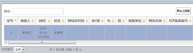 (五)導出打印。 組織單位可使用系統“導出上報表”功能,導出政府網站和欄目(系統)基本信息,并生成excel文件格式的上報表,打印簽字蓋章后呈報上級組織單位。