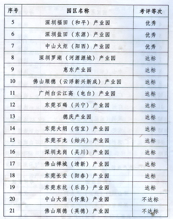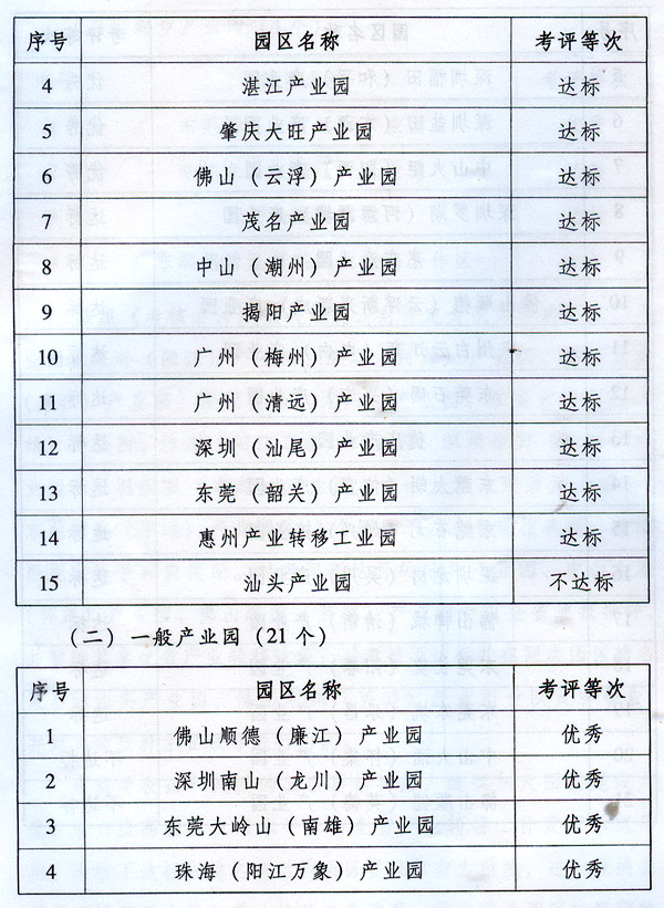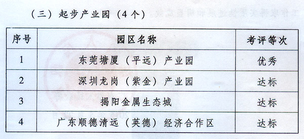 按照《考核辦法》有關(guān)規(guī)定,對評定為優(yōu)秀等次的江門產(chǎn)業(yè)園、珠海(陽江)產(chǎn)業(yè)園、深圳(河源)產(chǎn)業(yè)園、佛山順德(廉江)產(chǎn)業(yè)園、深圳南山(龍川)產(chǎn)業(yè)園、東莞大嶺山(南雄)產(chǎn)業(yè)園、珠海(陽江萬象)產(chǎn)業(yè)園、深圳福田(和平)產(chǎn)業(yè)園、深圳鹽田(東源)產(chǎn)業(yè)園、中山火炬(陽西)產(chǎn)業(yè)園、東莞塘廈(平遠)產(chǎn)業(yè)園等11個園區(qū)予以全省通報表揚,并按照規(guī)定給予相應獎勵。對考評不達標的汕頭產(chǎn)業(yè)園、中山大涌(懷集)產(chǎn)業(yè)園、佛山順德(英德)產(chǎn)業(yè)園予以全省通報批評,并暫停其享受省產(chǎn)業(yè)轉(zhuǎn)移政策;對考核不達標并在同類園區(qū)排名最后的汕頭產(chǎn)業(yè)園、佛山順德(英德)產(chǎn)業(yè)園予以黃牌警告,并對當?shù)卣饕I(lǐng)導進行約談。 ? ? 廣東省人民政府 2015年5月22日 |
