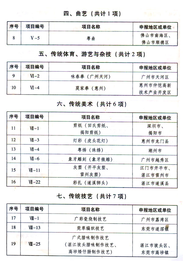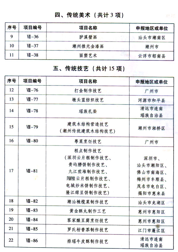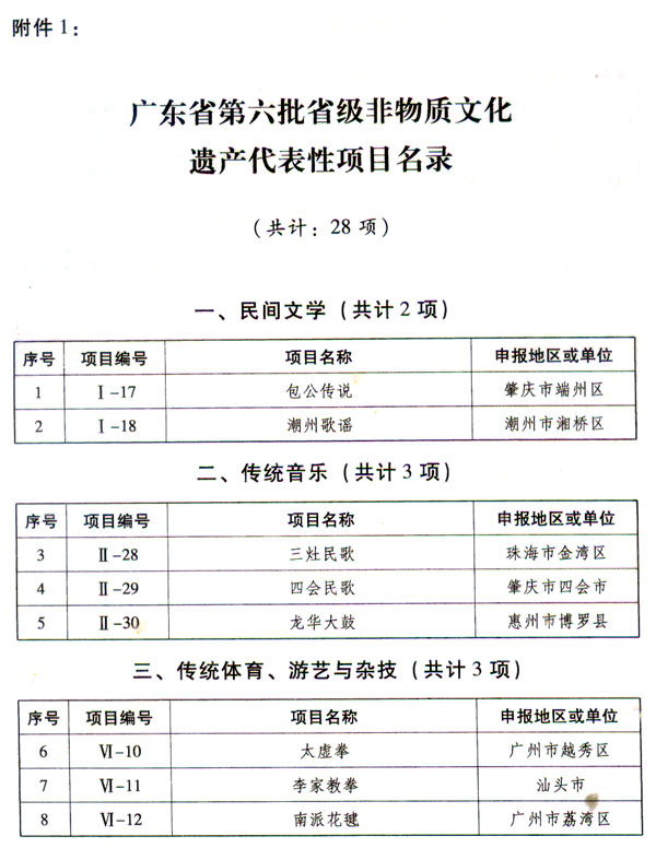 ? 廣東省人民政府關于批準并公布廣東省 第六批省級非物質文化遺產名錄的通知