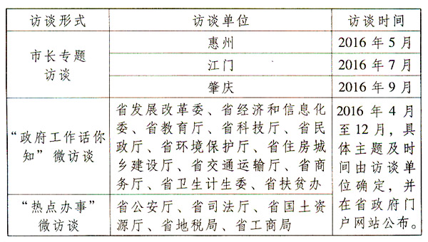 (三)加強宣傳,增強實效。通過政府網站、平面媒體和新媒體發布訪談預告及訪談圖文實錄、剪輯視頻。省政府門戶網站策劃推出“2016年政府工作話你知”專題,匯總發布訪談相關的政策文件、工作動態、媒體報道等內容,方便公眾全方位了解相關工作。