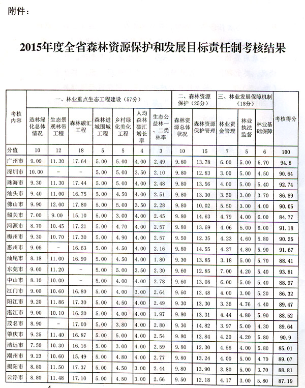 ? 廣東省人民政府辦公廳關(guān)于2015年度 全省森林資源保護(hù)和發(fā)展目標(biāo) 責(zé)任制考核結(jié)果的通報