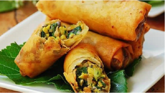 早在古代,潮州人就有吃春卷的習俗,在古時,春餅又稱“春盤”, 相傳在距今一千六百年前的東晉時,就有春盤問世了。春盤,即在立春日用蔬菜、餅餌、果品、糖果等匯集成盤,饋贈親友,取其生發迎春之意,象征一元復始萬象更新之吉祥。春餅傳至近代,又衍變成春卷,與春餅并行,是一種潮州民間著名小吃。不過,餅皮攤得更薄,卷入陷料封口后,再放入油鍋炸成金黃色,吃起來特別香脆可口,不僅立春日吃,一年四季均可吃了。