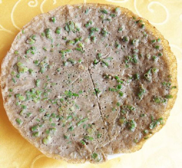 花麥糍是韶關周陂鎮的特色小吃。花麥學名蕎麥,含有豐富的維生素E和可溶性膳食纖維,有降低人體血脂和膽固醇、軟化血管、保護視力和預防腦血管出血的作用。花麥糍制作方法:把花麥磨成粉,再用水拌成漿,加上蔥花,放在鍋煮熟即可。