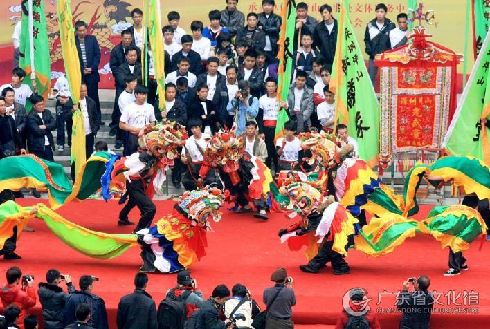 麒麟是坪山客家人心中神圣的吉祥仁獸。坪山麒麟舞源于明末清初山西五臺山竹林寺,民國時期傳入坪山,其是在螳螂拳功法基礎上,根據農耕文化時期農民們在四季生活和勞作習慣等方面的內容創編而成,套路舞法身兼南北兩派麒麟之長,外呈剛勁、莊嚴、細膩、靈活的風格特點,內合儒道兩家周易陰陽八卦五行運行原理,講究內外兼修,化于形而斂于內。