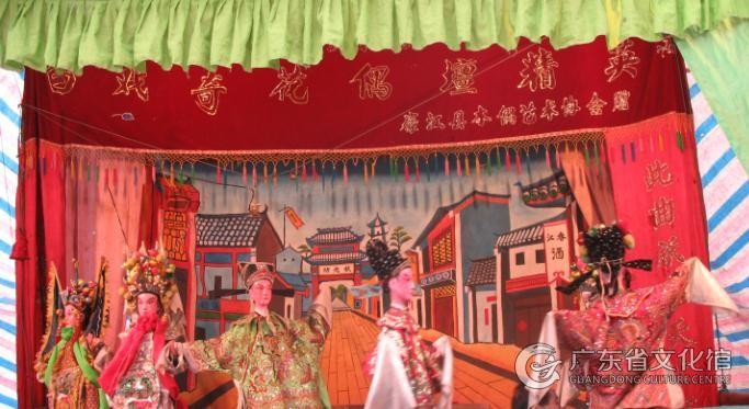 粵西白戲原稱“白戲仔”、“安鋪白戲”,是以粵西白話方言演唱的、有特定的音樂伴奏和多種板式綜合運用唱腔的一種杖頭木偶戲,流行于廣東省湛江市的廉江市、遂溪縣及廣西合浦、博白、欽州等地。粵西白戲大約形成于清末,最初只是竹筒或木魚伴奏的民歌形式,至民國時期形成了獨特的音樂伴奏和唱腔,并相繼成立許多白戲木偶班。