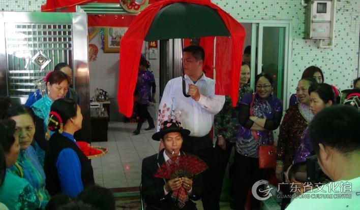 大亞灣地區古來就是疍民的聚居地之一,明末清初屈大均《廣東新語》稱,“諸蛋以艇為家,是曰蛋家。其有男未聘,則置盆草于梢;女未受聘,則置盆花于梢,以致媒妁。婚時以蠻歌相迎,男歌勝則奪女過舟。”大亞灣漁家婚嫁是大亞灣地區疍家漁民人生禮俗中的重要組成部分,其保留了沿海疍民“蠻歌相迎”等傳統婚嫁禮儀,是傳統上疍家漁民“浮家泛宅”生活的縮影。現如今,大亞灣漁家婚嫁主要分布在惠州市大亞灣地區的沿海疍民聚居村落,包括大亞灣經濟技術開發區的澳頭街道辦東升村、前進村、金門塘村和霞涌街道辦霞新村。