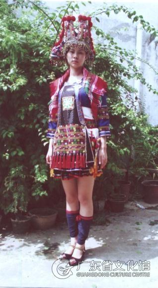 女裝包括長衣、內(nèi)裙(百褶裙)、護(hù)衣、圍裙等;服飾由頭飾、圍裙、腰帶、腳綁、大方巾等刺繡飾品。佩有三角耳環(huán)、手鐲、金銀釵、銅錢、銅扣、銀扣、珠子等;刺繡品用紅、黃、綠、青、白五種顏色,多以紅黃綠為主色調(diào)。除日常服飾外,女裝還區(qū)分為未婚少女裝、已婚婦女裝、嫁裝和師娘、歌嬤服等。女裝注重頭部裝飾和腰部以下的裝飾,頭飾有未婚和已婚之別,而腰飾的穿戴條理則可體現(xiàn)生活狀況,腳綁是瑤族婦女適應(yīng)大山生活,用以防蚊蟲、蛇、草、刺等。此外,乳源瑤族服飾中的童裝主要表現(xiàn)在兒童帽和上衣的標(biāo)志,且多以鈴鐺、銅錢等信物代表吉祥、辟邪等寓意,以祈求神靈保佑,禱告新生命健康成長。