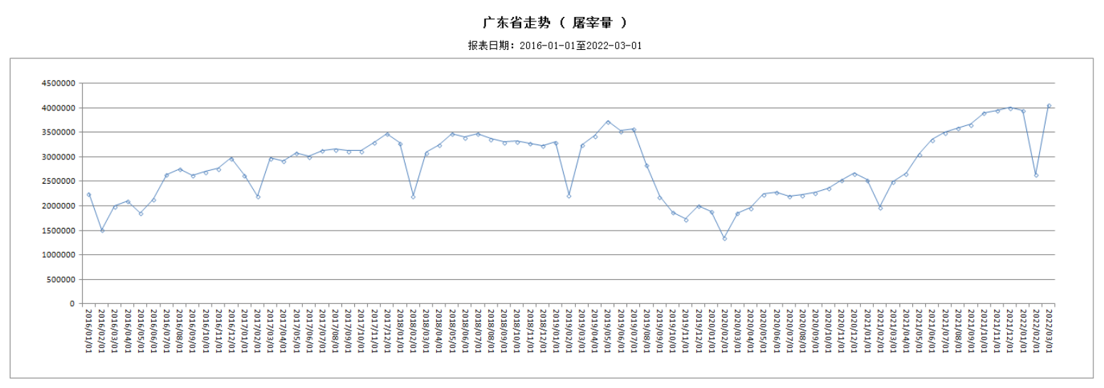 2022年3月份廣東省屠宰生豬及肉品供應情況