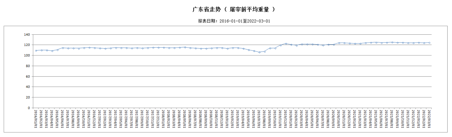 3月份,跟蹤監測的316家生豬定點屠宰企業生豬屠宰前平均重量124.94公斤,環比上升0.64%。