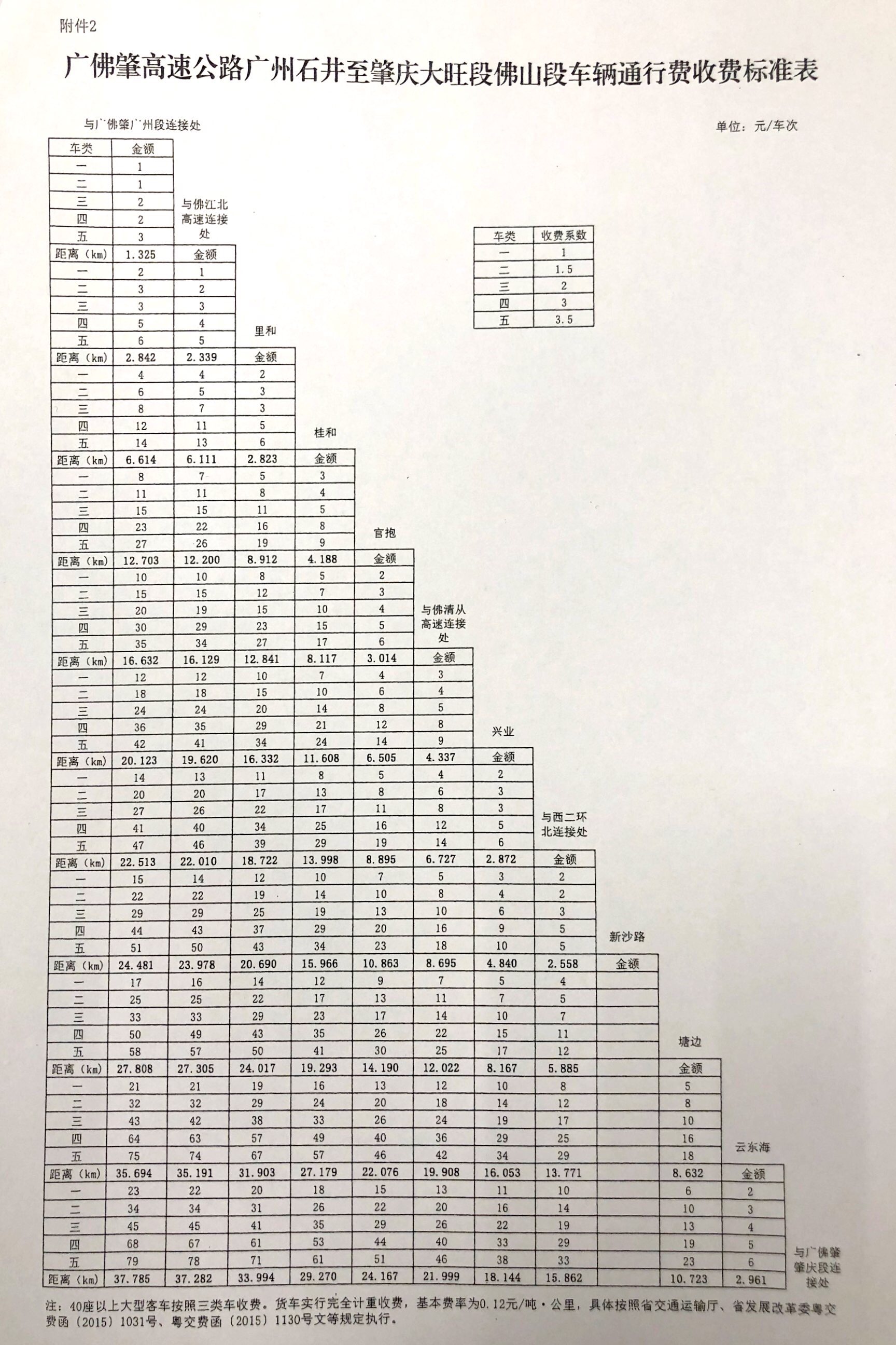 2.廣佛肇高速公路廣州石井至肇慶大旺段佛山段車輛通行費收費標(biāo)準(zhǔn)表