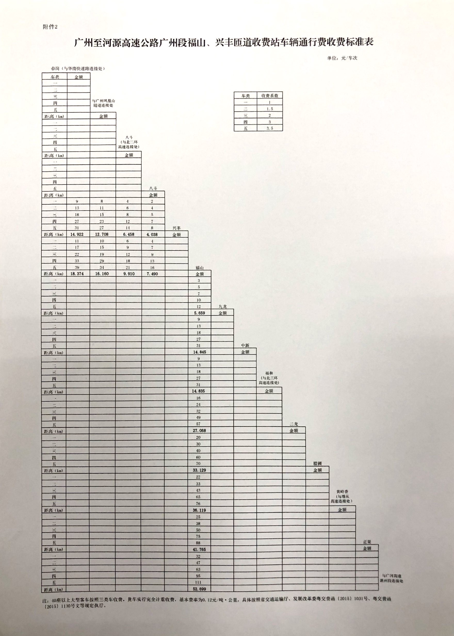 2.廣州至河源高速公路廣州段福山、興豐匝道收費(fèi)站車輛通行費(fèi)收費(fèi)標(biāo)準(zhǔn)表